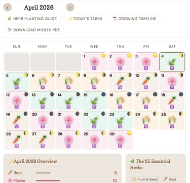 Whether you are a seasoned herb grower looking to deepen your practice, or a complete beginner who wants to start growing their own family medicine with as much guidance as possible, the calendar gives you a clear, beautiful, practical companion for the whole season.